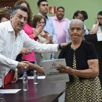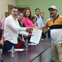 Derivado de las gestiones emprendidas por el Gobierno Municipal, a través de Sindicatura Municipal y el Instituto Nacional de Suelo Sustentable (INSUS), el Alcalde Javier Lamarque Cano y la Presidenta del Voluntariado DIF Cajeme, Patricia Patiño Fierro encabezaron la entrega de títulos de propiedad de lotes a 130 familias de las colonias Manlio Fabio Beltrones, Pioneros, Esperanza Tiznado, Los Fundadores, Mártires de San Ignacio y Cuauhtémoc Cárdenas, con las que se brinda certeza jurídica patrimonial a quienes desde hace muchos años habían recibido los predios en los que construyeron sus viviendas.