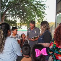 Estuvieron presentes la Oficial Alejandra Lema, Comandante del grupo UMAV; Priscila Valdez, Trabajadora Social, en representación de la Directora de la Unidad Especializada para Menores, Miriam Rodríguez Tapia; así como niñas, niños, adolescentes y adultos mayores del Ejido Vicente Guerrero; entre otros.