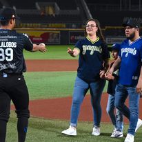 La primera bola en el inicio de serie ante Culiacán estuvo a cargo de Gloria Esquer Bours, madre de la niña Gloria Sophia Montaño Esquer, que dejó un legado de amor y solidaridad al donar sus órganos y dar vida tras su partida. También estuvieron presentes familiares de la homenajeada.