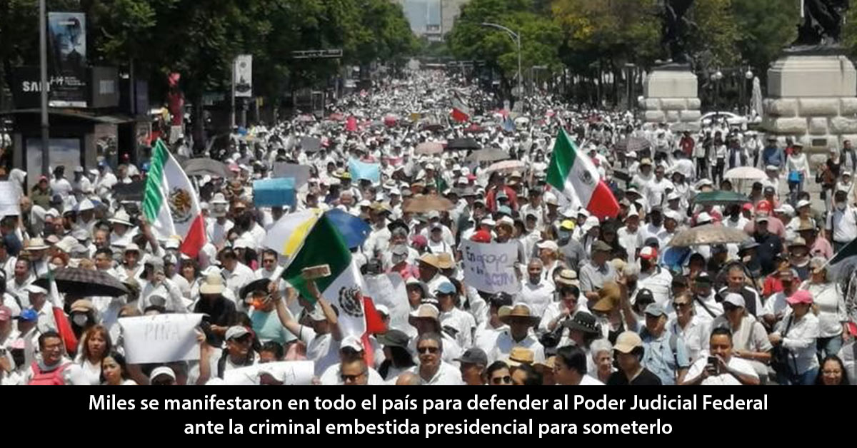 El Poder Judicial Federal tiene alrededor de 55 mil funcionarios, entre magistrados, jueces, proyectistas, auxiliares, intendentes y demás, pero este domingo en las principales ciudades de México se manifestaron en su defensa muchos miles más ante la criminal embestida presidencial con la pretensión de someterlo y cancelarle su autonomía constitucional.