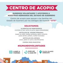 Únete y apoya a nuestros hermanos del estado de Guerrero quienes resultaron fuertemente afectados por el huracán “Otis”.