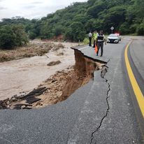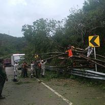Personal de la Dirección de Seguridad en Carreteras e Instalaciones de la Guardia nacional mantiene los desvíos a la circulación vehicular y el control de tránsito, a fin de permitir el trabajo del personal y maquinaria para liberar en su totalidad las vialidades obstruidas por deslaves, así como la reparación de los tramos donde se registraron socavones o inundaciones.