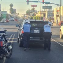 Los policías municipales no solamente infraccionan al darte vuelta en U en la Miguel Alemán, también apoyan a vehículos varados que puedan ser un riesgo vial para quienes circulan por dicha avenida.