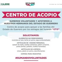 Únete y apoya a nuestros hermanos del estado de Guerrero quienes resultaron fuertemente afectados por el huracán “Otis”.
