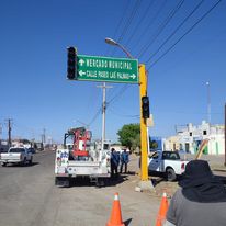 Como parte del trabajo intensivo que se tiene en la Ciudad, para la colocación y rehabilitación de semaforización y señalización, se llevó a cabo la instalación de un nuevo semáforo al sur, en el crucero de la 5 de febrero y Boulevard Las Palmas.