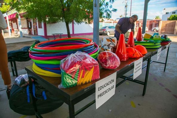 El material deportivo que se utilizará en escuelas de nivel preescolar, especial, primaria, secundaria y telesecundaria incluye balones de futbol, basquetbol, volibol, aros y conos de plástico, mientras que los paquetes de uniforme constan de pants, chamarra y camisa tipo polo.