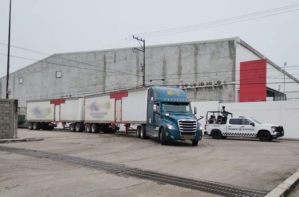 Desde almacenes de Villahermosa, Tabasco, los tractocamiones escoltados por personal de la Guardia Nacional transportan refrigeradores, estufas, colchones, ventiladores, licuadoras y utensilios de cocina.