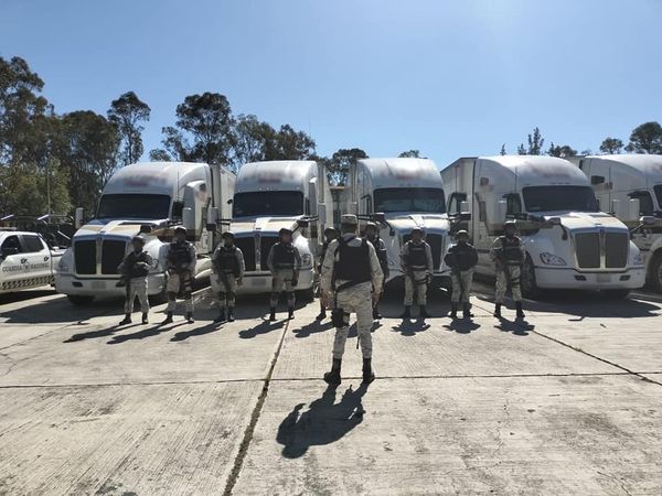 En el marco de la Estrategia Nacional de Seguridad Pública, en Guerrero, la Guardia Nacional (GN) proporciona el servicio de escolta a tractocamiones que transportan enseres domésticos al puerto de Acapulco, destinados a las familias que perdieron sus pertenencias durante el impacto del huracán Otis.