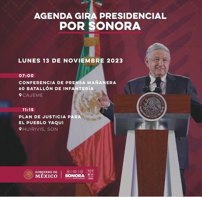 Al atardecer de este domingo llegó a Cajeme el presidente Andrés Manuel López Obrador. Este lunes hará su “mañanera” en el cuartel militar de Esperanza y poco antes del mediodía estará en Huirivis, donde será la evaluación del Plan de Justicia Yaqui. Se esperan muchas noticias.