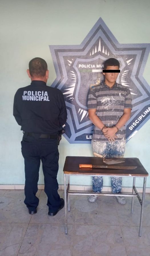 Al llegar la unidad, de inmediato los policías dialogaron con el sospechoso de nombre Bryan Rafael “N.”, de 18 años, quien fue posteriormente arrestado, asegurándole un machete y una cuchara de albañil.