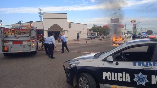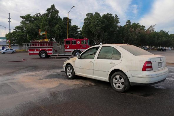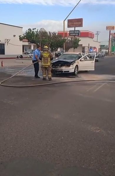 Asimismo, se solicitó apoyo vía frecuencia a Bomberos de Ciudad Obregón, quienes acudieron con una unidad extintora sofocando las llamas del vehículo, logrando evitar un mayor daño a la unidad y riesgos a quienes se encontraban en lugar principalmente.