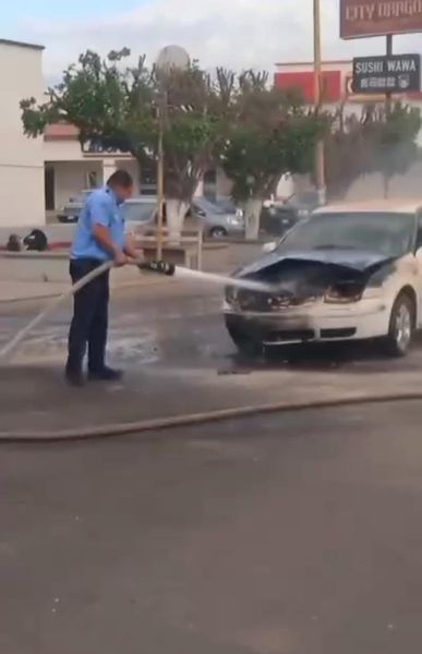 Auxilian Policías de Cajeme a madre que se le incendia vehículo; los agentes están preparados para cualquier contingencia