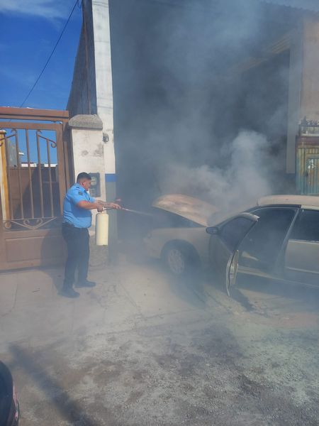 Al encontrarse patrullando elementos de Tránsito Municipal observaron que en un taller mecánico se encontraba una persona en peligro, al registrarse un incendio en un vehículo sedán, por lo que descendieron rápido de la unidad policial para actuar de inmediato haciéndose cargo de los hechos.