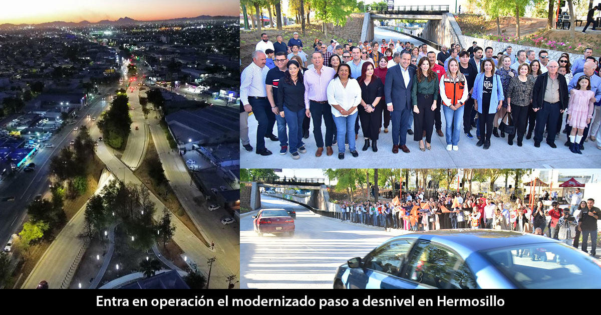 En tiempo y forma, sin sobre costos y de acuerdo con el proyecto arquitectónico inicial, entró en operación el paso a desnivel y puente en la confluencia del bulevar Luis Encinas y las calles Américas y Veracruz, luego de su reconstrucción y modernización integral durante 11 meses, con inversión municipal directa de 64 millones 882 mil 229 pesos.