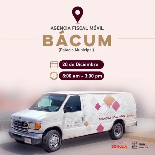 Acércate a la unidad móvil el día miércoles 20 de diciembre En el horario de 8:00 A.M. a 3:00 P.M. Se atenderá solamente a personas pertenecientes al Municipio de Bácum.