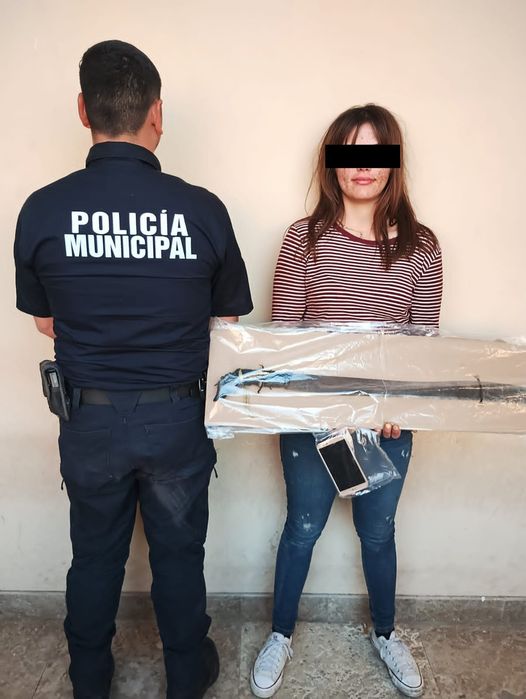 Por lo anterior, mujeres agentes de la Policía Preventiva utilizaron técnicas y tácticas para la detención de la presunta, a quien al realizarle una inspección física se le aseguró un arma punzocortante y un teléfono celular de la marca LG color dorado, siendo este último el objeto que presuntamente había despojado a un ciudadano.