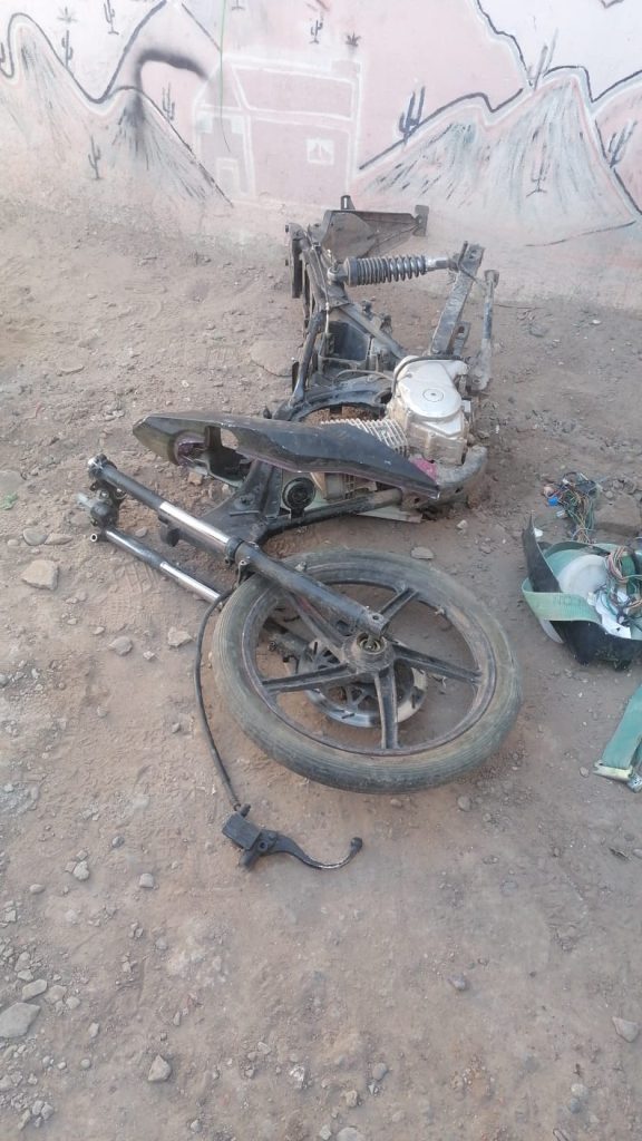 A esto se suma otra motocicleta Itálika, una motocicleta más de color negro con gris, una motocicleta desarmada con reporte de robo, otra motocicleta roja en el interior de la vivienda, equipo táctico, chalecos balísticos y machetes, básculas grameras, 09.950 kilogramos de marihuana, un arma corta calibre .9 milímetros marca Smith and Wesson, y documentación varia.
