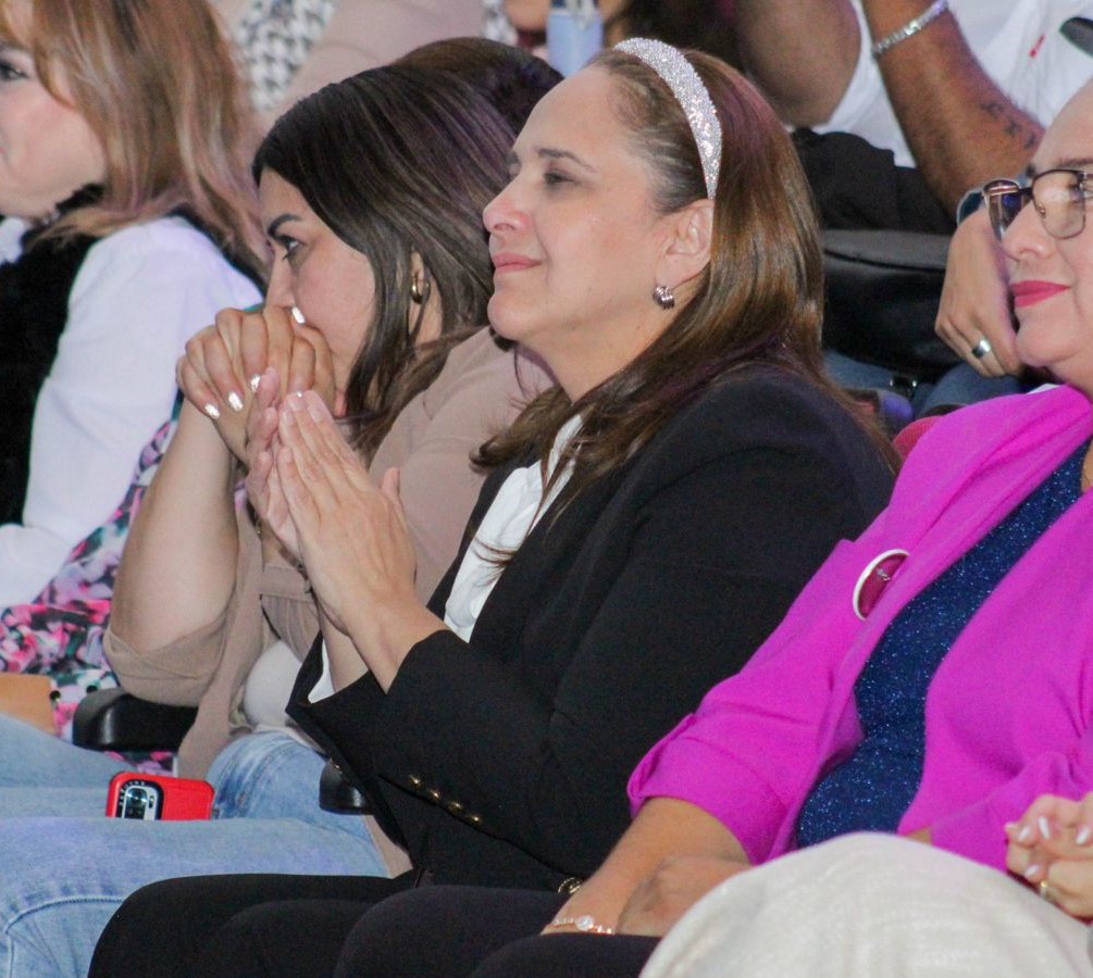 Emocionada hasta las lágrimas, la alcaldesa Karla Córdova, al ver el desempeño de los pequeños del Centro Asistencial de Desarrollo Infantil del DIF, al celebrar el Festival Navideño 2023.