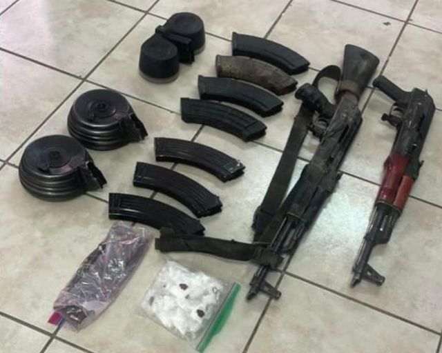 En el lugar se aseguraron además, dos armas largas de fuego tipo fusil, 10 cargadores, 50 cartuchos, ademas de 50 envoltorios de sustancia granulada parecida a narcótico conocido como metanfetamina.