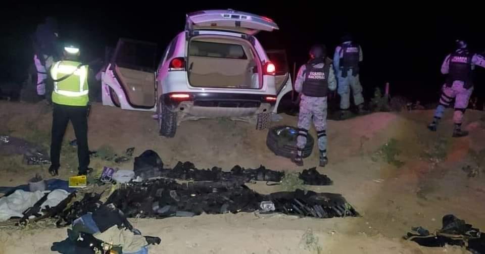 Durante patrullajes de prevención del delito en el tramo carretero Sonoyta-San Luis Río Colorado, en Sonora, la Guardia Nacional aseguró 1 camioneta blindada, en la que se localizó una ametralladora, 6 fusiles de asalto, 114 cargadores y más de 3,000 cartuchos útiles.