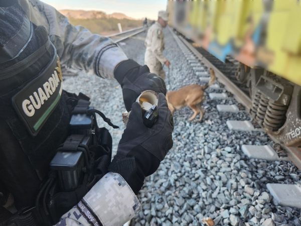 Durante recorridos de vigilancia y prevención del delito, guardias nacionales y personal militar, apoyados por un binomio canófilo, patrullaban las inmediaciones de la colonia Centauro del Norte en el municipio de Cajeme, y al llegar al punto donde se encontraba un tren de carga estacionado, avistaron en el piso varios tubos de plástico, ante los cuales el ejemplar canino mostró un cambio de conducta por la posible presencia de un objeto o sustancia ilícita.
