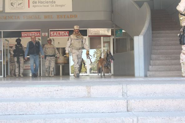 La Unidad Municipal de Protección Civil informa que se descarta la presencia de un artefacto explosivo en la Agencia Fiscal de Ciudad Obregón, luego de una inspección minuciosa del edificio y corroborada por binomio canino de la Sedena, tras la declaración de edificio seguro se reanudaron las actividades en cada una de las dependencias estatales ahí ubicadas.
