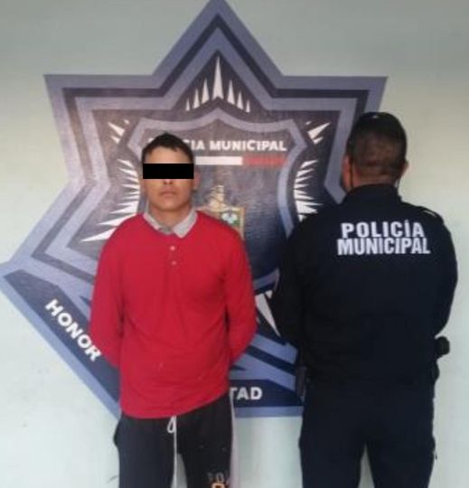 Ángel Guadalupe “N.”, de 20 años, fue trasladado al edificio de Seguridad Pública Municipal para la realización del Informe Policial Homologado y turnado a las instancias correspondientes conforme a la ley.