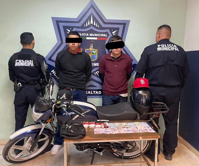Al proceder con la captura los aprehendidos fueron identificados como Luis Ángel “N.”, de 19 años y José Antonio “N.”, de 23 años, a quienes se les aseguró un arma blanca y dinero en efectivo de diversas denominaciones, siendo este último el botín que presuntamente habían robado minutos atrás, por lo que fueron vinculados por la presunta comisión del delito de robo con violencia en contra del sector comercio.