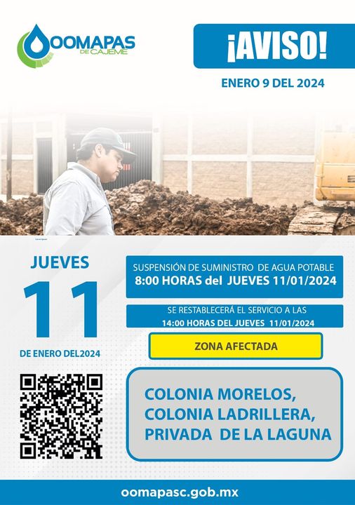 Lo anterior por trabajos programados en crucero de calle Morelos y Aguascalientes.