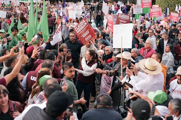En su discurso, Claudia Sheinbaum exhibió los actuales conflictos que tienen los partidos de oposición, los cuales han demostrado la existencia de acuerdos cupulares por puestos de poder y afirmó que por esta razón es indispensable la continuidad a la 4T, un modelo en el que no se traiciona al pueblo de México.