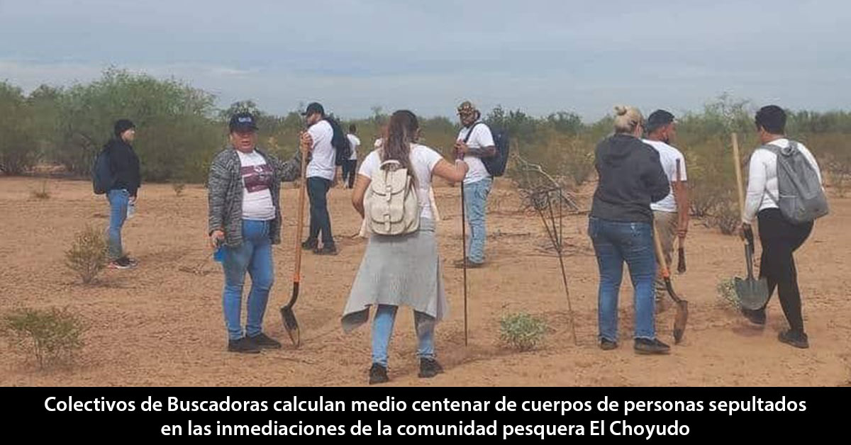 Solo en una fosa se encontraron los cuerpos de seis personas; de acuerdo con sus prendas y características corporales, hay muchas mujeres, e incluso la proporción podría ser mayor a las víctimas varones; en la mayoría de los casos son de reciente sepultura; son 30 las fosas ya abiertas y contando porque la exploración sigue en un paraje cercano a la comunidad pesquera El Choyudo, al sur de la Costa de Hermosillo.