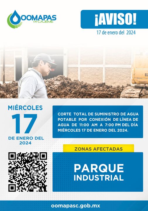 Corte de servicio de agua en Parque Industrial de Ciudad Obregón por reparación de línea de agua de 8 pulgadas.