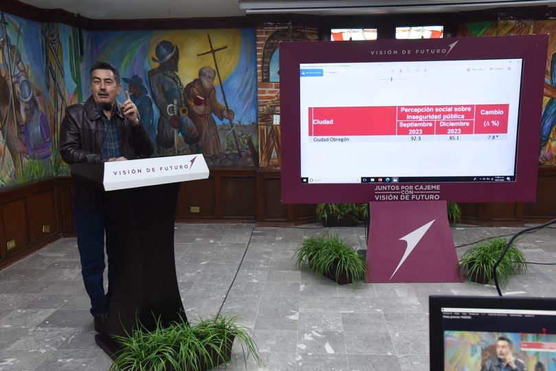 Desde julio de 2021, cuando el INEGI empezó a medir la percepción social de inseguridad, el municipio de Cajeme ha disminuido 10 puntos porcentuales en esa valoración, ya que esta se encontraba en 95 puntos y, en los resultados de la reciente encuesta ENSU, Cajeme registró 85.1 por ciento en esta medición, mejorando en 7.8 puntos dicha percepción, lo que lo situó entre los diez mejores municipios del país con avances significativos en la evaluación del cuarto trimestre de 2023.