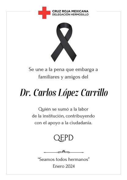 “Lamentamos el fallecimiento del Dr. Carlos López Carrillo, quién en vida colaboró en diferentes eventos de la Institución”, expresó la Cruz Roja