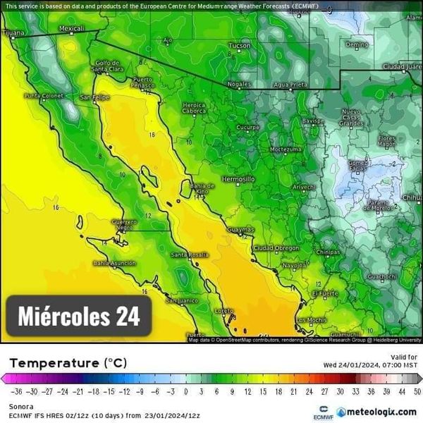 En evaluación de algunos modelos de predicción se pronostica que el siguiente evento de precipitaciones para el estado de #Sonora se pudiera dar para los días 1, 2 y 3 de febrero.