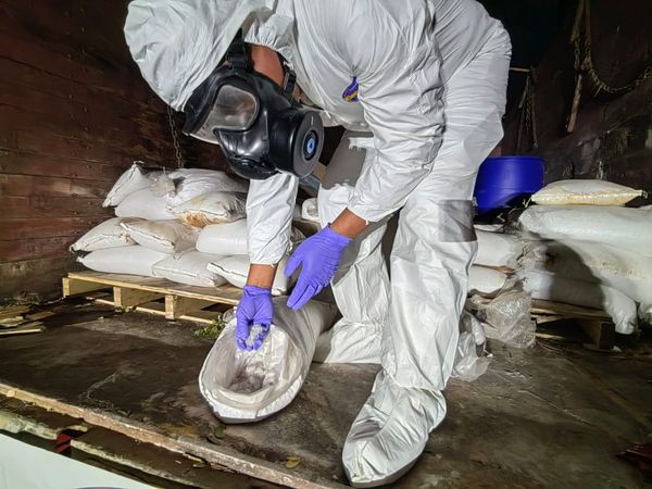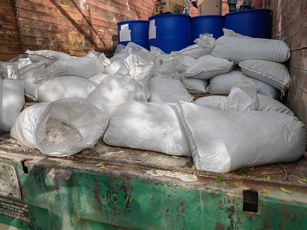 +Fueron localizados 2 mil 400 litros y 80 costales de sustancias químicas