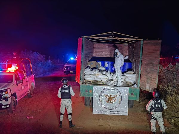 En cumplimiento de la Estrategia Nacional de Seguridad Pública, en el estado de Sinaloa, integrantes de la Guardia Nacional (GN) localizaron un tractocamión que transportaba precursores químicos y utensilios, aparentemente utilizados para la elaboración de droga sintética.