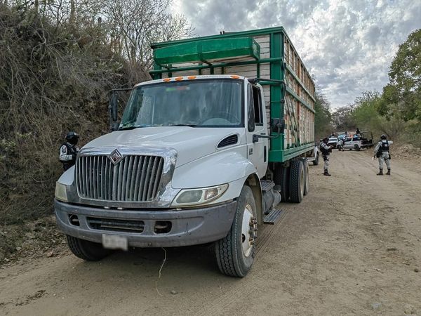 Durante patrullajes de seguridad y vigilancia en el tramo carretero Choix-Potrero de Cancio, guardias nacionales avistaron un vehículo de carga con las puertas abiertas, estacionado a un lado de la vía.
