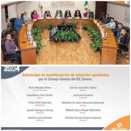 Un total de 10 solicitudes de manifestación de intención para contender por una candidatura independiente fueron aprobadas por el Consejo General del Instituto Estatal Electoral y de Participación Ciudadana (IEE Sonora) para el Proceso Electoral Ordinario Local 2023 – 2024.