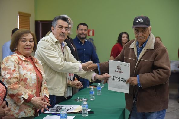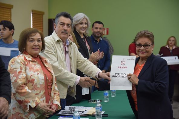 Después de más de 20 años de gestiones, el Presidente Municipal Javier Lamarque Cano, encabezó la entrega de títulos de propiedad de lotes a 103 familias de las colonias Manlio Fabio Beltrones, Esperanza Tiznado, Jardines de Providencia, Cuauhtémoc Cárdenas, Mártires de San Ignacio, Los Fundadores, Vida Digna, Pioneros de Cajeme y Los Presidentes, con las que se brinda certeza jurídica patrimonial a quienes desde hace más de seis administraciones habían recibido los predios en los que construyeron sus viviendas.