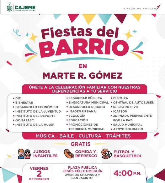 #MunicipiodeCajeme #VisiónDeFuturo #Comunidad #FiestadelBarrio2024 #DifCajeme #SeguridadPúblicadeCajeme #InstitutodelaJuventud #OomapascCajeme #InstitutodelDeporte #InstitutoCajemensedelaMujer #SaludMunicipal #Icatson #GobiernoyCiudadanía #Trámite