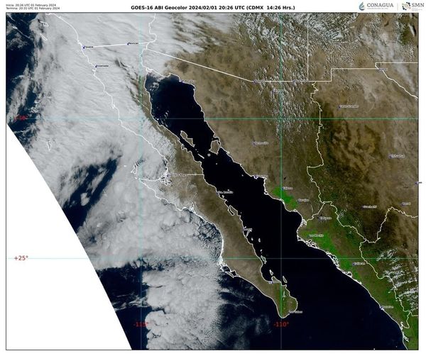 En imágenes satelitales se puede ver el ingreso de algunas bandas nubosas en el sector noroeste del estado, provenientes de Baja California.