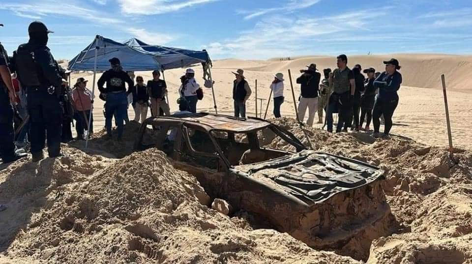Localizan un vehículo con restos humanos enterrado en el Valle de Mexicali