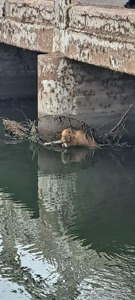 #CAJEME Rescata Policía Municipal a perrito que cayó al canal alto