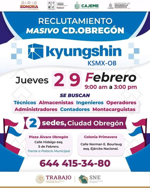 #MunicipiodeCajeme#GobiernodeSonora#Kyungshin#SecretaríadelTrabajoyPrevisiónSocial#SEDECO#SNE