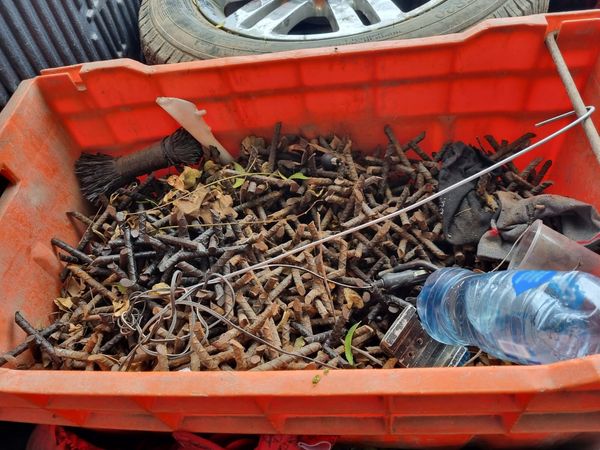 Los integrantes de la institución llevaron a cabo una inspección en la camioneta y se percataron de que contaba con una placa metálica de protección en la parte superior y las ventanillas polarizadas eran de un espesor superior, además de localizar en su interior dos armas largas con sus cargadores abastecidos, así como una caja de plástico que contenía artefactos metálicos conocidos como ponchallantas.
