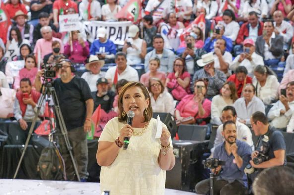 “Que se escuche bien: vamos a desmilitarizar el país, la Fuerza Armada va a regresar a lo que le compete hacer, defender la soberanía de México, defender el territorio nacional. Hoy, los delincuentes se han apropiado del territorio mexicano, tenemos regiones completas a merced de la delincuencia. Por eso, el Ejército va a dejar de bachear carreteras, el Ejército va a dejar de construir hoteles, va a dejar de construir trenes. Va a dejar de estar en las aduanas. El Ejército va a estar a donde tiene que estar: a defender a la Patria”, dijo ante cientos de simpatizantes que se dieron cita en el auditorio Benito Juárez.