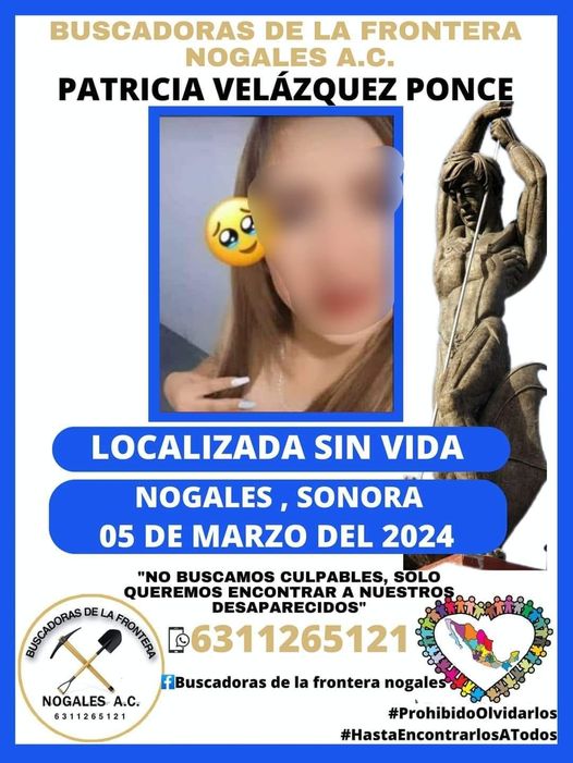 El colectivo Buscadoras de la Frontera Nogales dio a conocer a través de su página oficial de Facebook, el hallazgo del cuerpo sin vida de una mujer, para la cual en este mismo martes 5 de marzo a más temprana hora, se pedía apoyo para su localización.