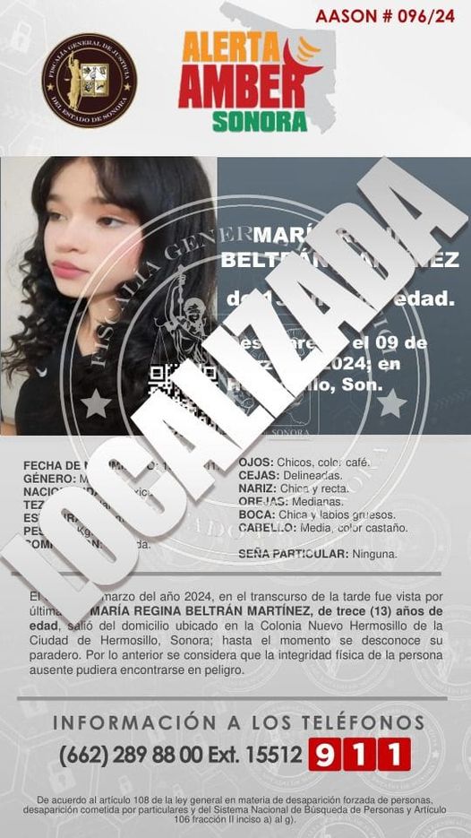 SE DESACTIVA ALERTA AMBER SONORA, SE LOCALIZÓ SANA y SALVA, LA ADOLESCENTE SALIÓ POR CUENTA PROPIA DE SU CASA Navegación de entradas Las casas antiguas en el centro de Hermosillo se han vuelto un peligroLa cuarta transformación le ha cumplido a Huatabampo y a sus pueblos originarios: Lorenia Valles