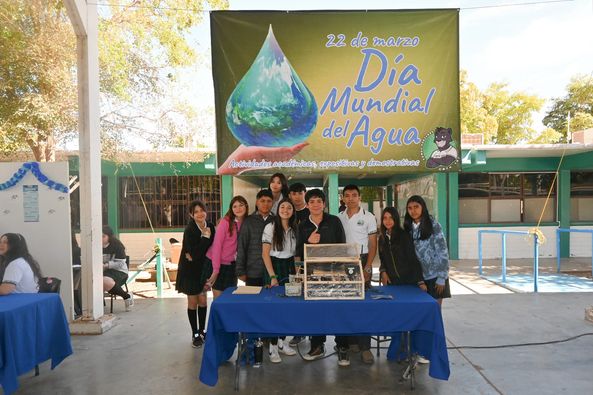 En las instalaciones del CBTA 197 en la comisaría de Providencia, alumnos, directivos escolares y funcionarios del área de comunicación social y Cultura del Agua del Organismo, celebraron con exposición de trabajos y maquetas el Día mundial del Agua.